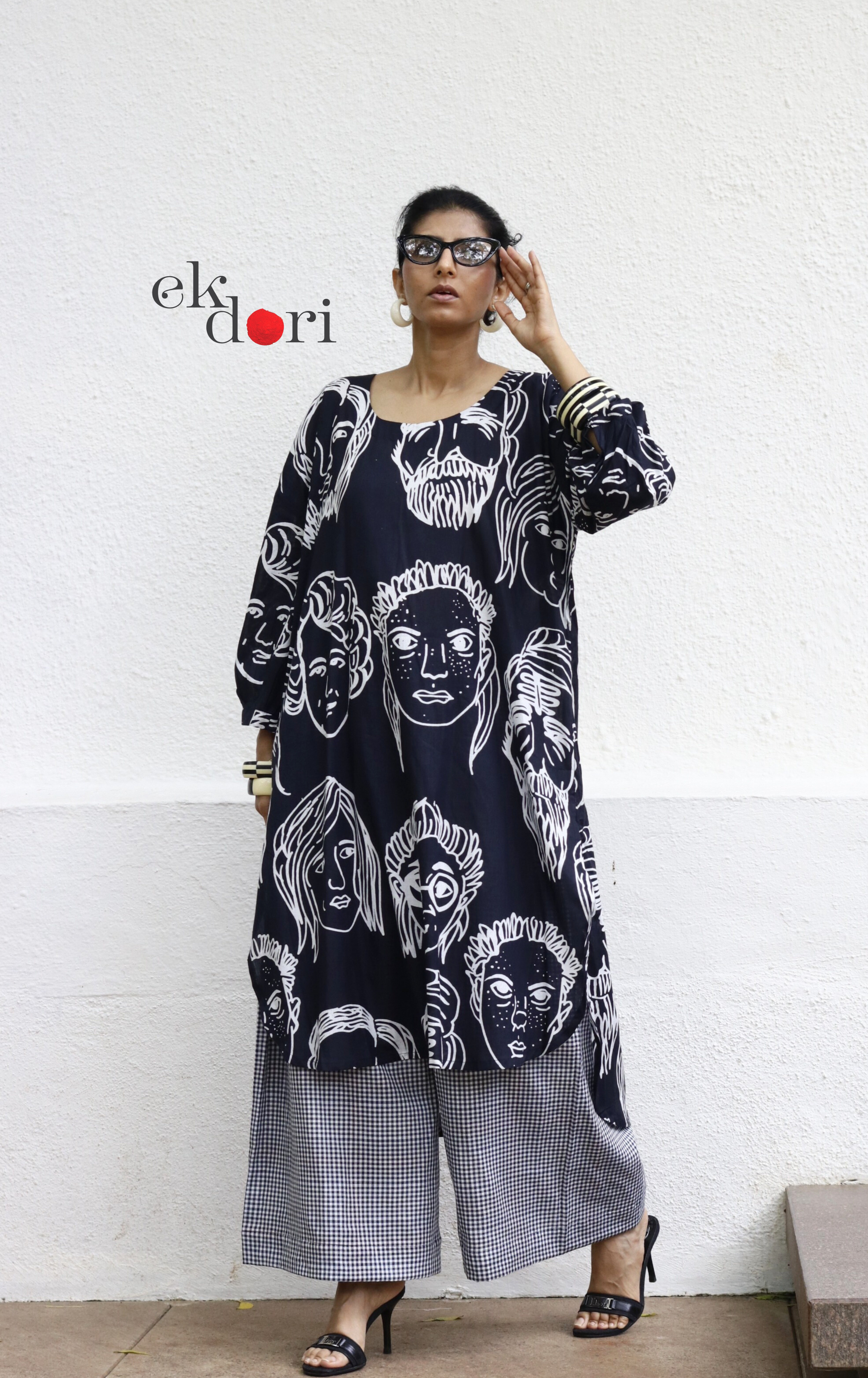 Cotton Kurta Co-Ord Set 'Portraits' : Buy Palazzo Pant Kurta Cotton Co-ord Set In Quirky Fun Print