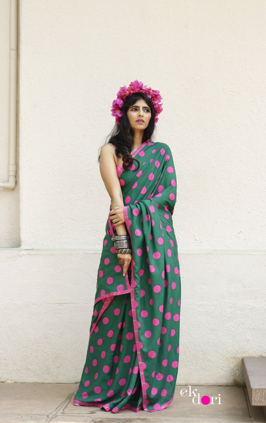 Pink Green Polka Dot Saree : Fun Under The Sun Saree Collection : Fun Printed Sarees For Summer