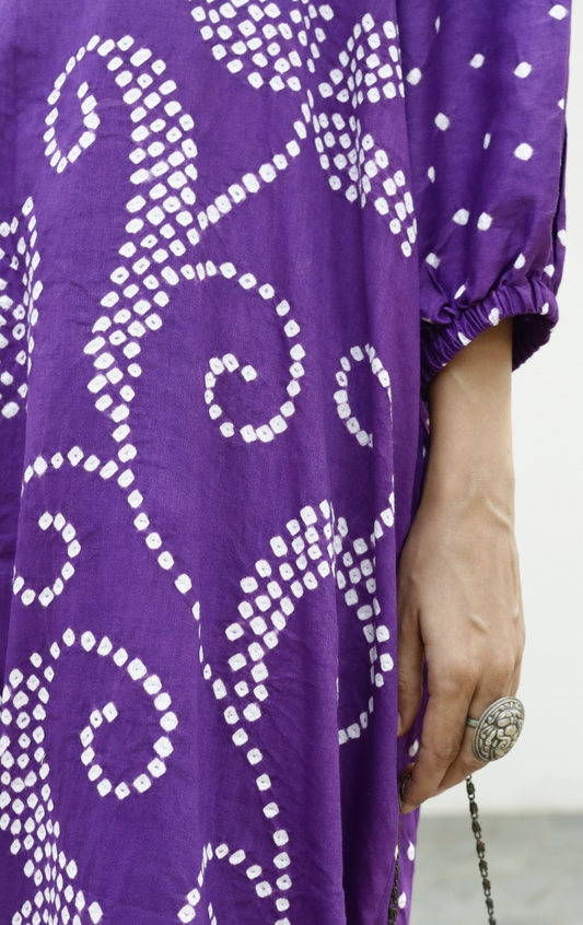 Bandhani Purple Cotton Co-ord Set : Buy Palazzo Pant Kurta Cotton Co-ord Set 'Bela Baahar'