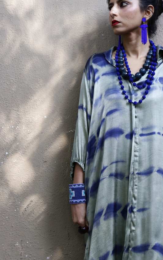 Tie & Dye Shibori 'Moss Garden' Blue Green Mashru Co-ord Set : Buy Kurta Palazzo Mushru Co-ord Set