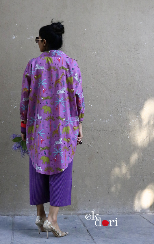 Cotton Kurta Co-Ord Set 'Purple Jungle' : Buy Palazzo Pant Kurta Cotton Co-ord Set In Bright Fun Print