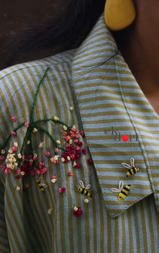 'Bees & Buds' Fun Embroidered Cotton Co-ord Set : Buy Palazzo Pant Kurta Cotton Co-ord Set