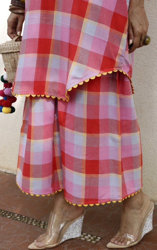 'Pink Play' Fun Checks Cotton Co-ord Set : Buy Palazzo Pant Kurta Cotton Co-ord Set