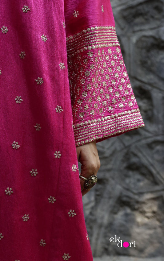 'Paisley Pink' Mashru Co-ord Set in Pink : Buy Palazzo Kurta Festive Co-ord Set