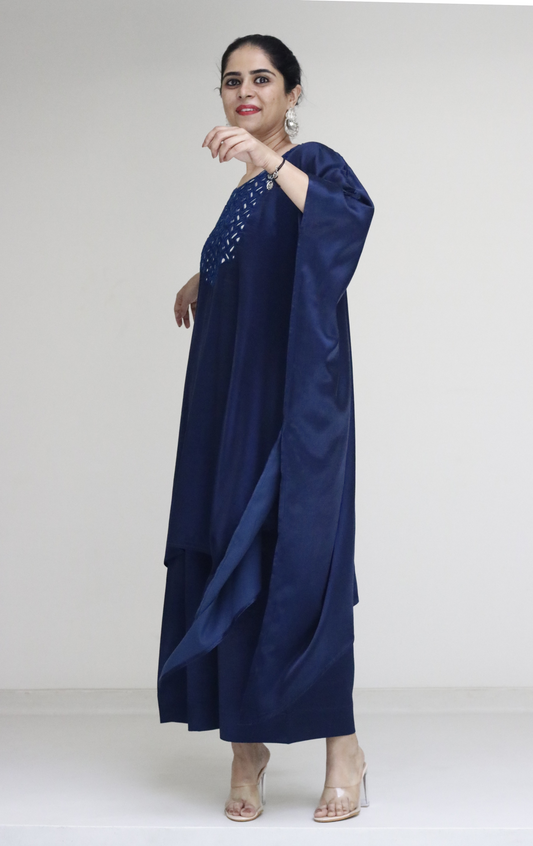 Mashru Mirror Work Co-ord Set in Blue 'Neelambari' : Buy Palazzo Kaftan Kurta Festive Co-ord Set
