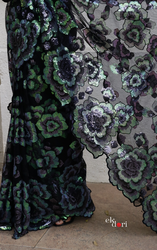 An Evening In Paris Floral Sequin Saree : 'An Evening In Paris' Sequin Cocktail Saree : Sequin Bollywood Saree