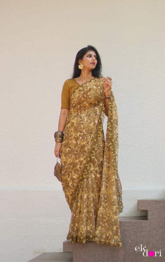 Vintage Earth Floral Sequin Saree : 'Vintage Earth' Sequin Cocktail Saree : Sequin Bollywood Saree