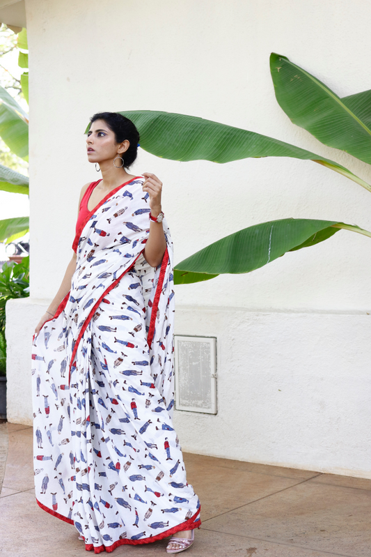 Cotton Printed Saree With Red Edges : A Carefree Stroll Cotton Saree :