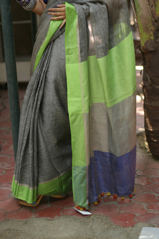 Buy Grey Linen Saree : Moonlit Night Grey Pure Linen Saree