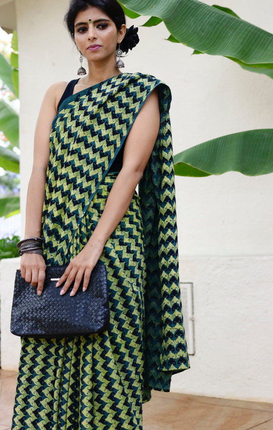 Cotton Saree Hand Printed Using Natural Dyes With Rich Textures : Maya Saree