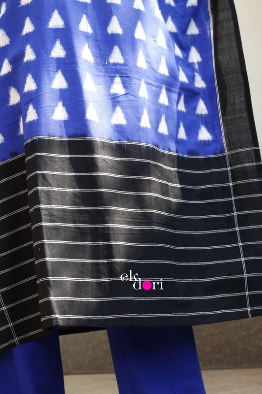 'By The Pool Handloom' Ikat Kaftan Kurta Dress : Blue Handloom Ikat Kurta
