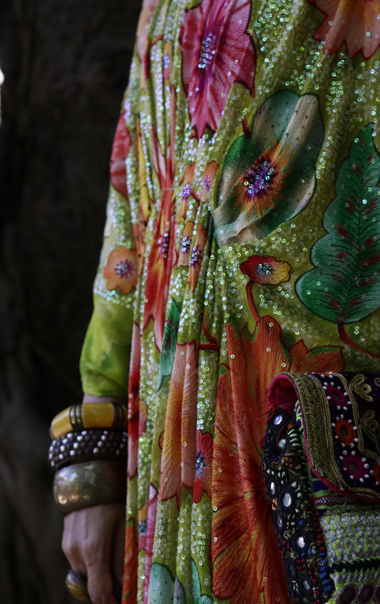 Vintage Earth Floral Sequin Saree : 'Vintage Earth' Sequin Cocktail Saree : Sequin Bollywood Saree