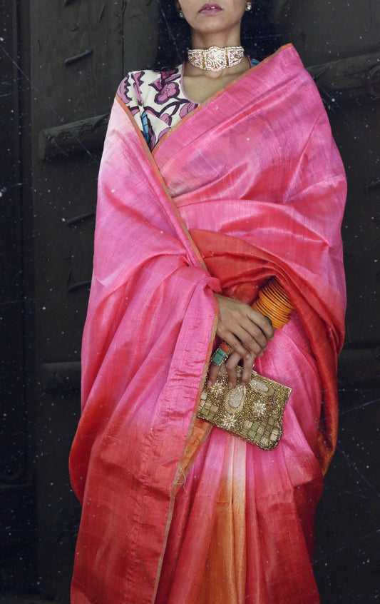 The Pink Sky Raw Silk Shaded Saree : Ombre Pink Raw Silk Saree