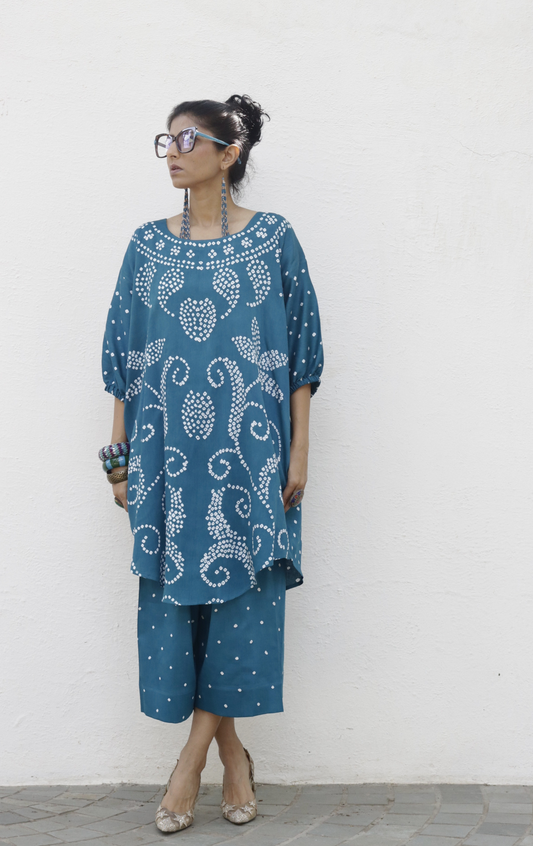 Bandhani 'Blue Barfi' Blue Cotton Co-ord Set : Buy Kurta Palazzo Cotton Co-ord Set