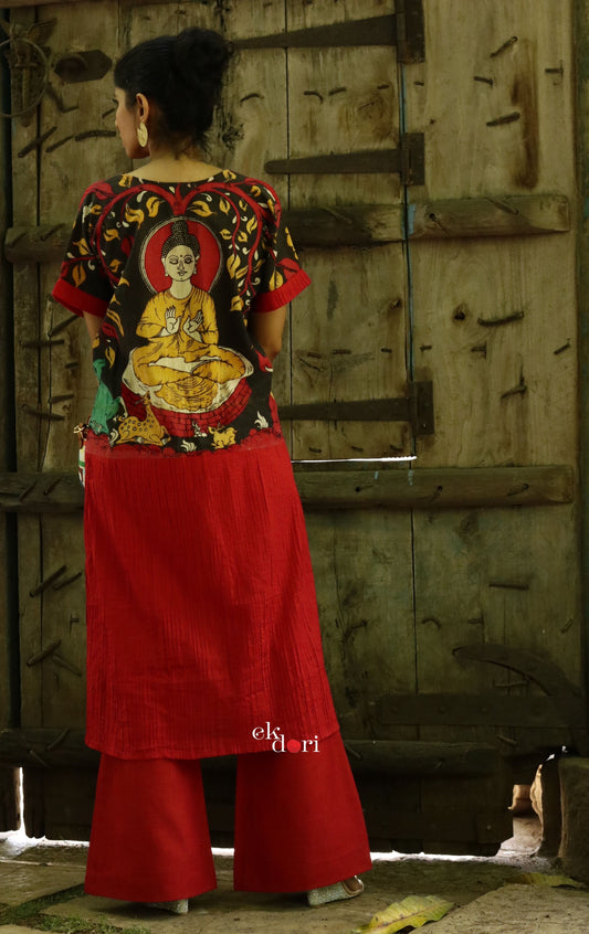 Buddha Kalamkari Kaftan Dress : Mangalgiri Cotton Kaftan Dress Kurta