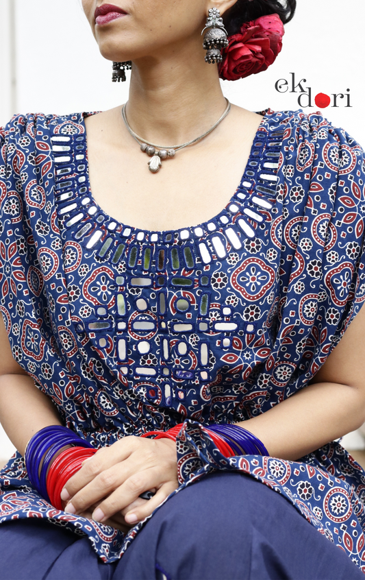 'Sitaroon Ki Mehfil' Mirror Work Cotton Lehenga & Top Set : Festive Navratri Kutch Lehenga & Top With Mirror Work