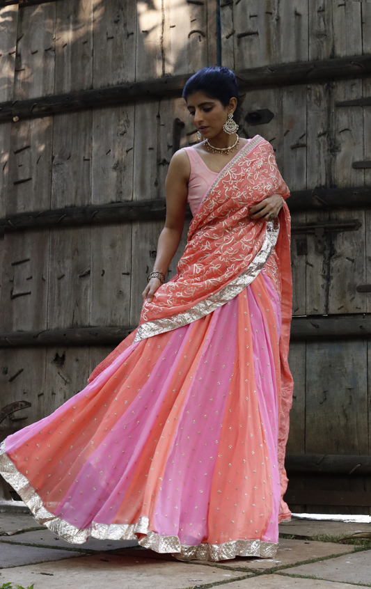 Peach Cobbler Lehenga Saree : Fun Kalidaar Lehenga Saree
