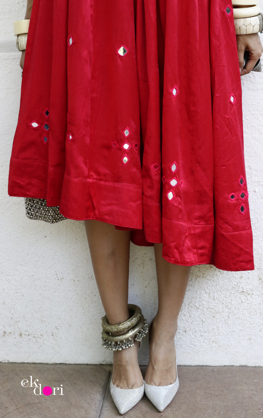 'Rani Rang' Mirror Work Mashru One Shoulder Festive Dress : Festive Modern Mirror Work Dress