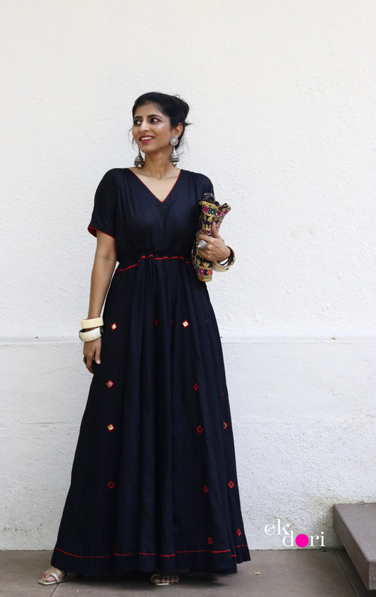 'Taaron Bhara Aasman' Mirror Work Cotton Anarkali Festive Dress : Festive Navratri Cotton Maxi Dress