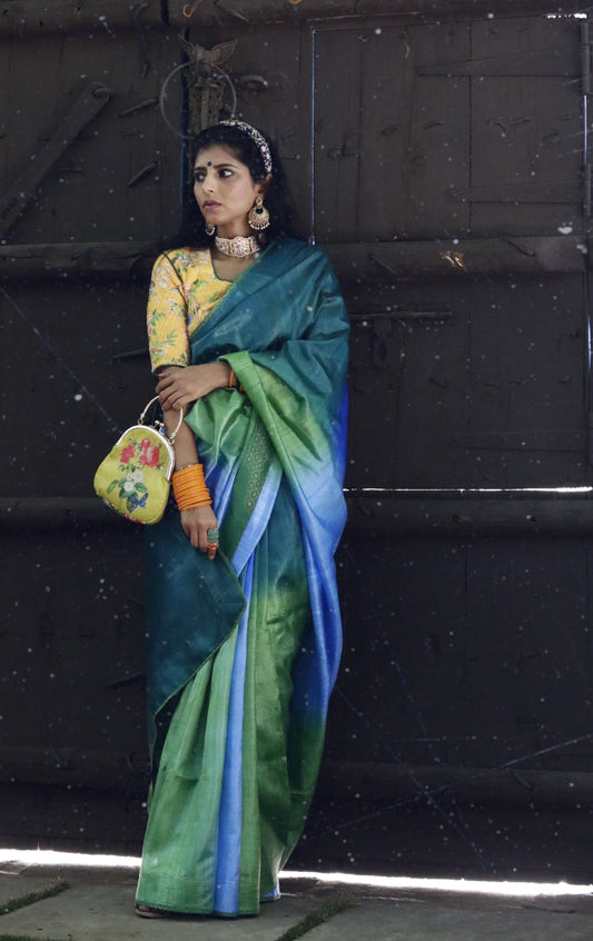 The Sea & Sky Raw Silk Shaded Saree : Ombre Blue Raw Silk Saree
