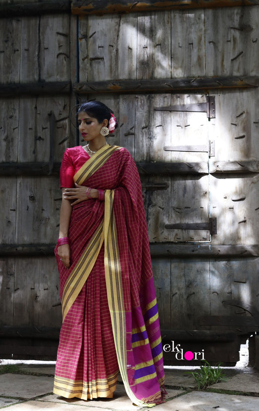 Buy Ilkal Cotton Silk Handloom Saree : Hand embroidered Ilkal 'Haldi Kumkum Saree'