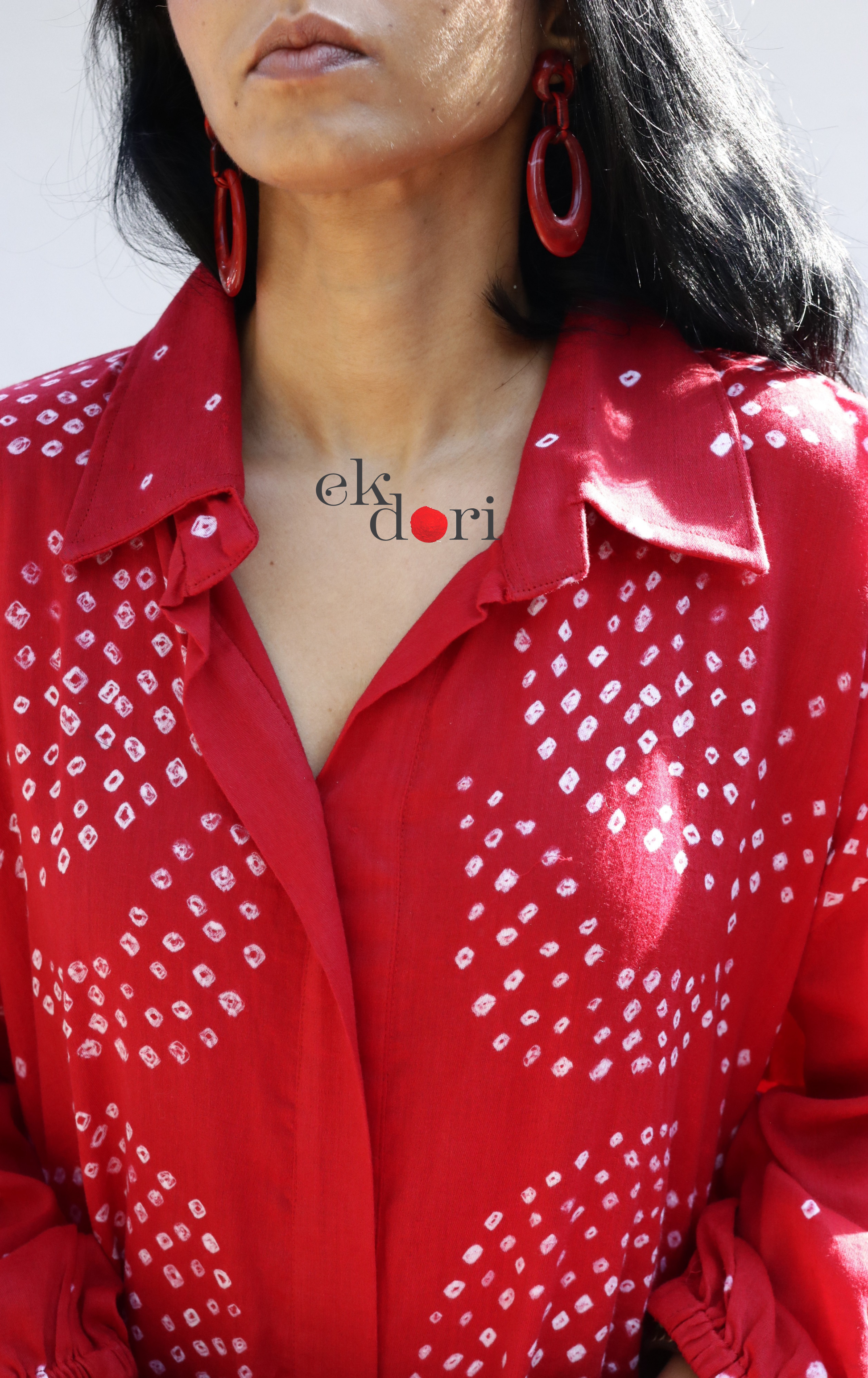 Bandhani Shibori 'Lal Bela' Cotton Co-ord Set : Buy Kurta Palazzo Cotton Co-ord Set Cotton Bandhani Set
