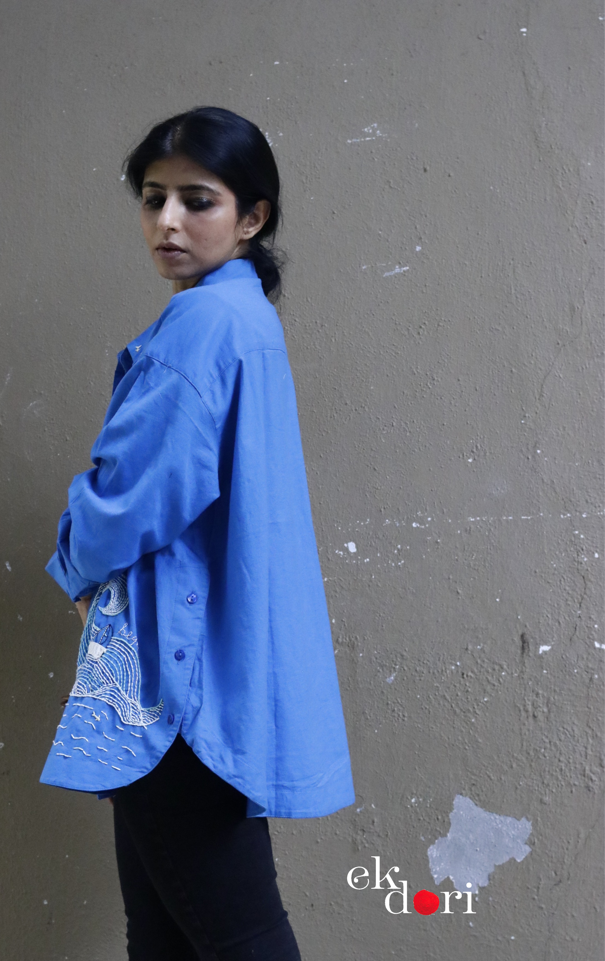 Cotton Hand Embroidered Shirt : 'Adventure At Sea' Cotton Shirt For Women : The Doodle Collection