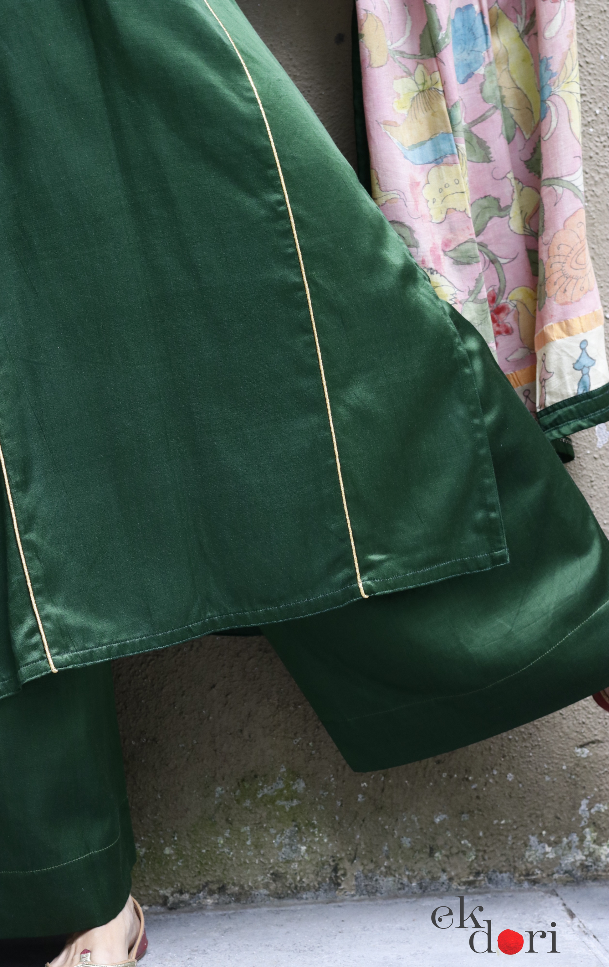 Mashru Kurta Co-ord Set in Green With Kalamkari Dupatta : Buy 'Radha' Kurta Palazzo Dupatta Festive Co-ord Set