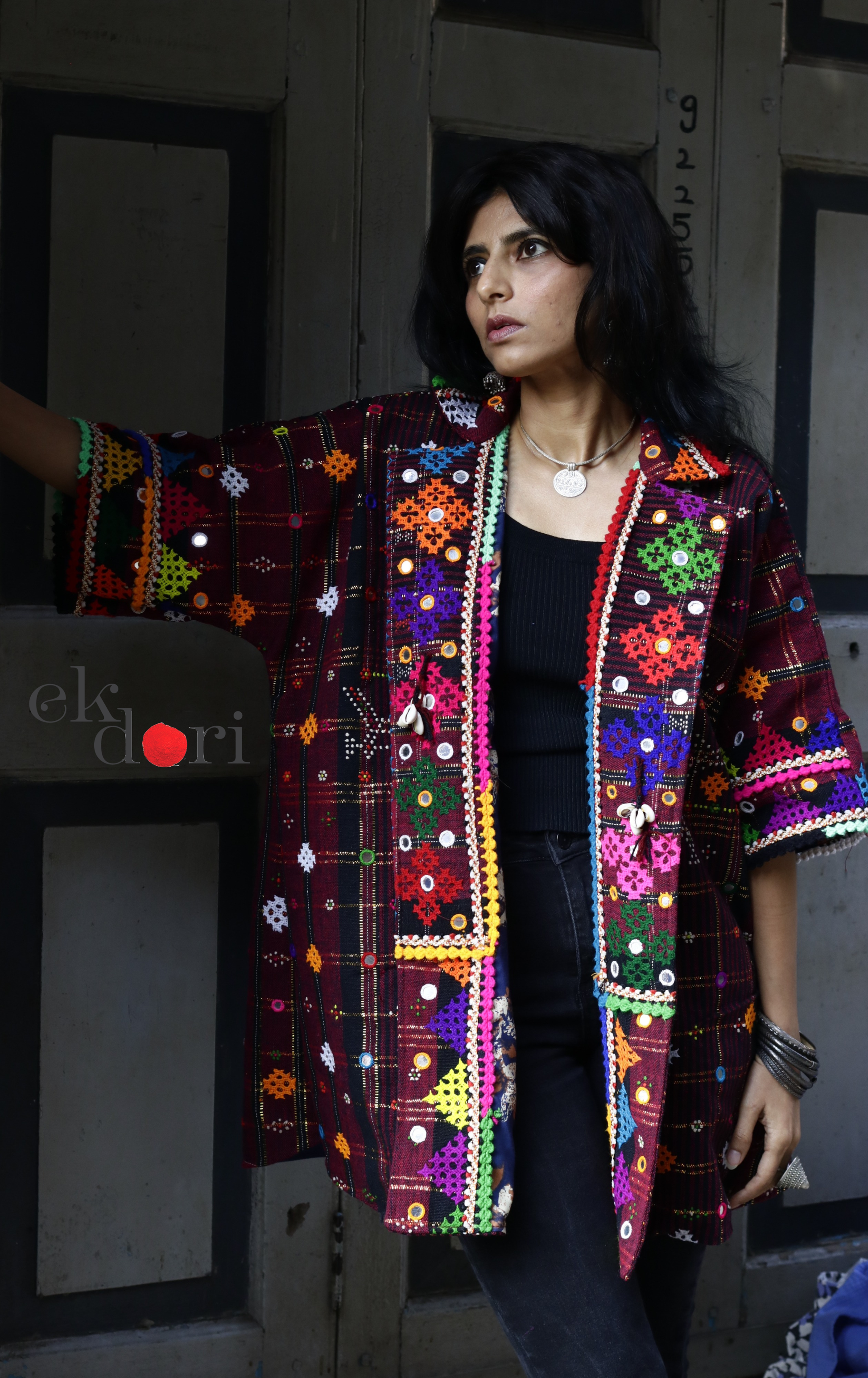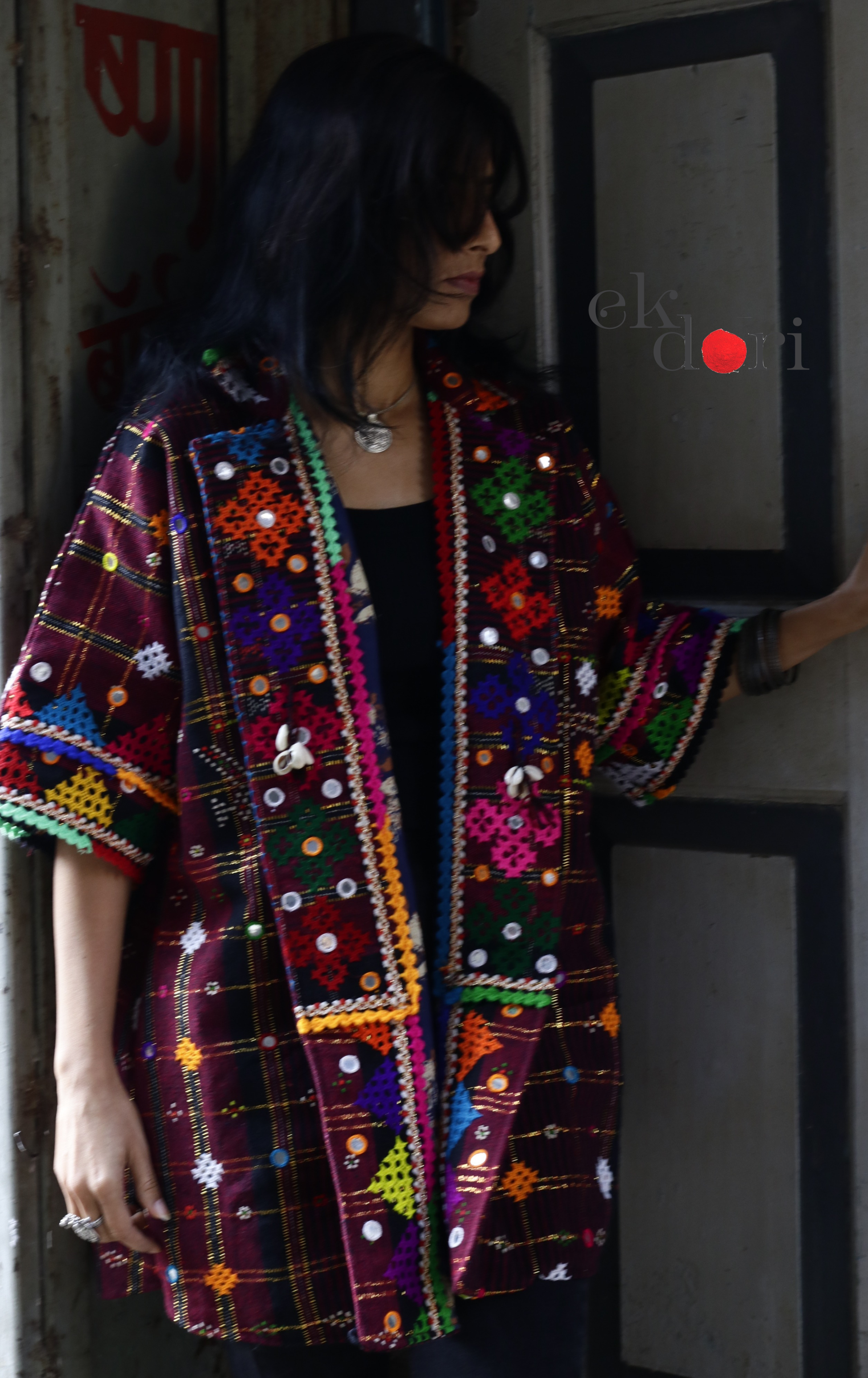Tangaliya Shawl Jacket With Kutch Embroidery - '70's Child' Tangaliya Boho Jacket