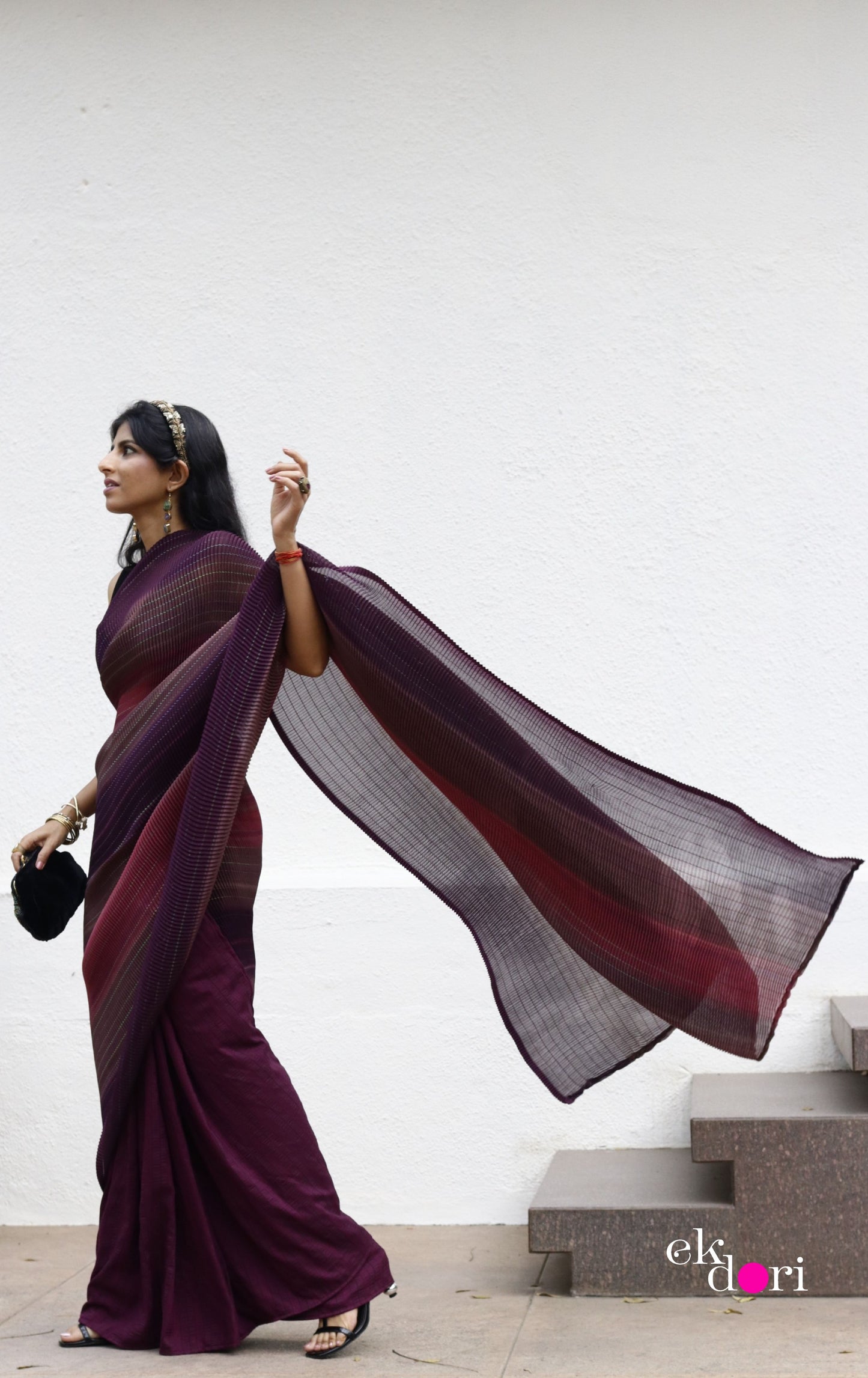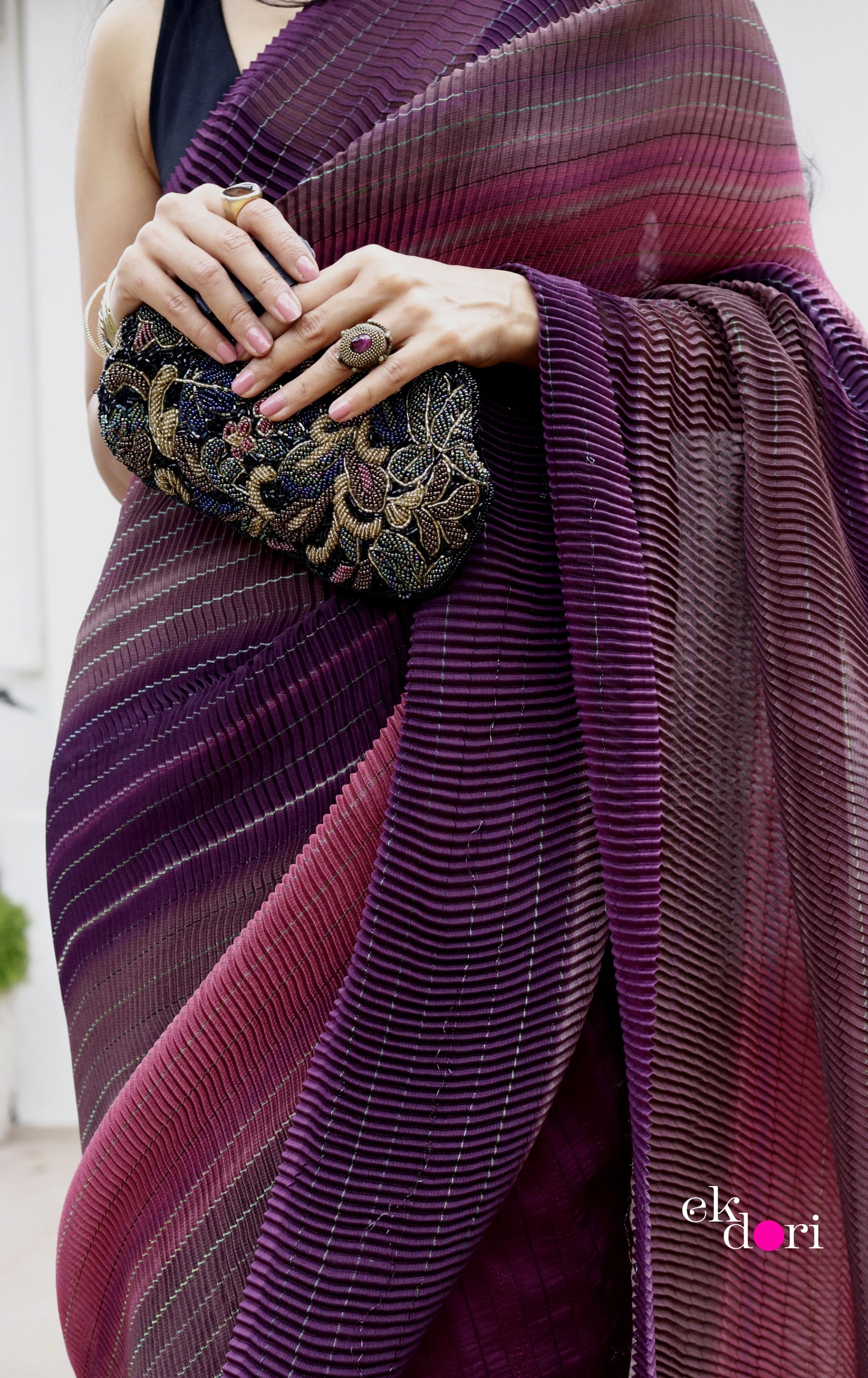 'Plum Paradise' Statement Shaded Micropleated : Fun Cocktail Saree Collection