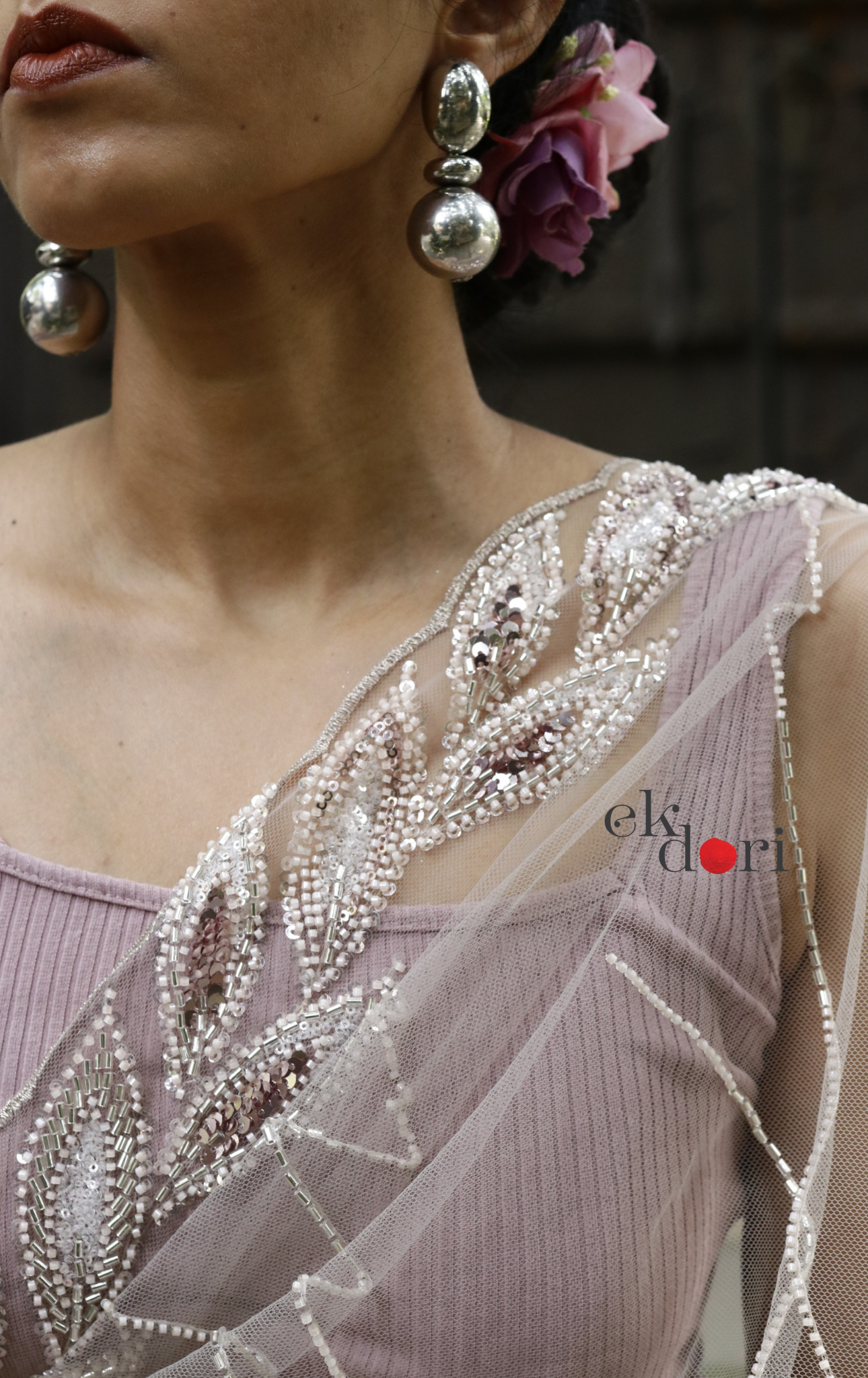 FABRIC : Soft net with sequin and bead work